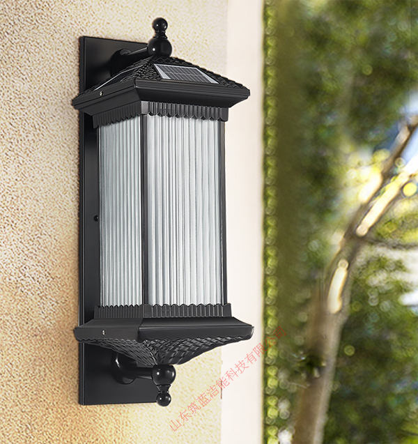 在庭院里給他按裝了筑藍(lán)太陽(yáng)能壁燈